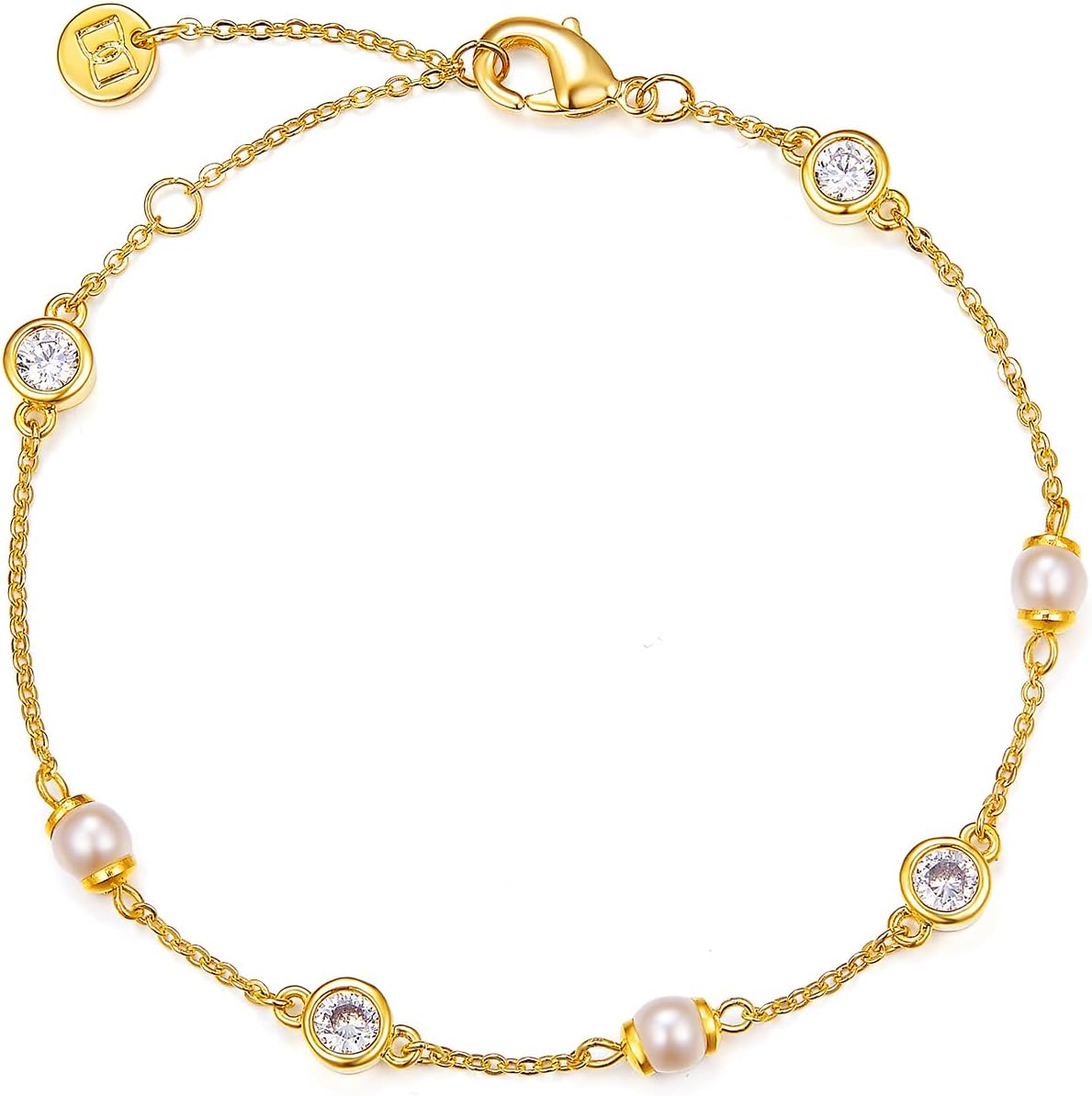 MINDDHA 14K Gold/White Gold Plated Cubic Zirconia Simulated Diamond Pearl Station Infinity Chain Bracelets for Women | Adjustable Chain Bracelet | 6-8 Inch
