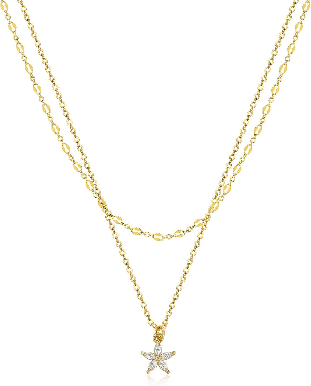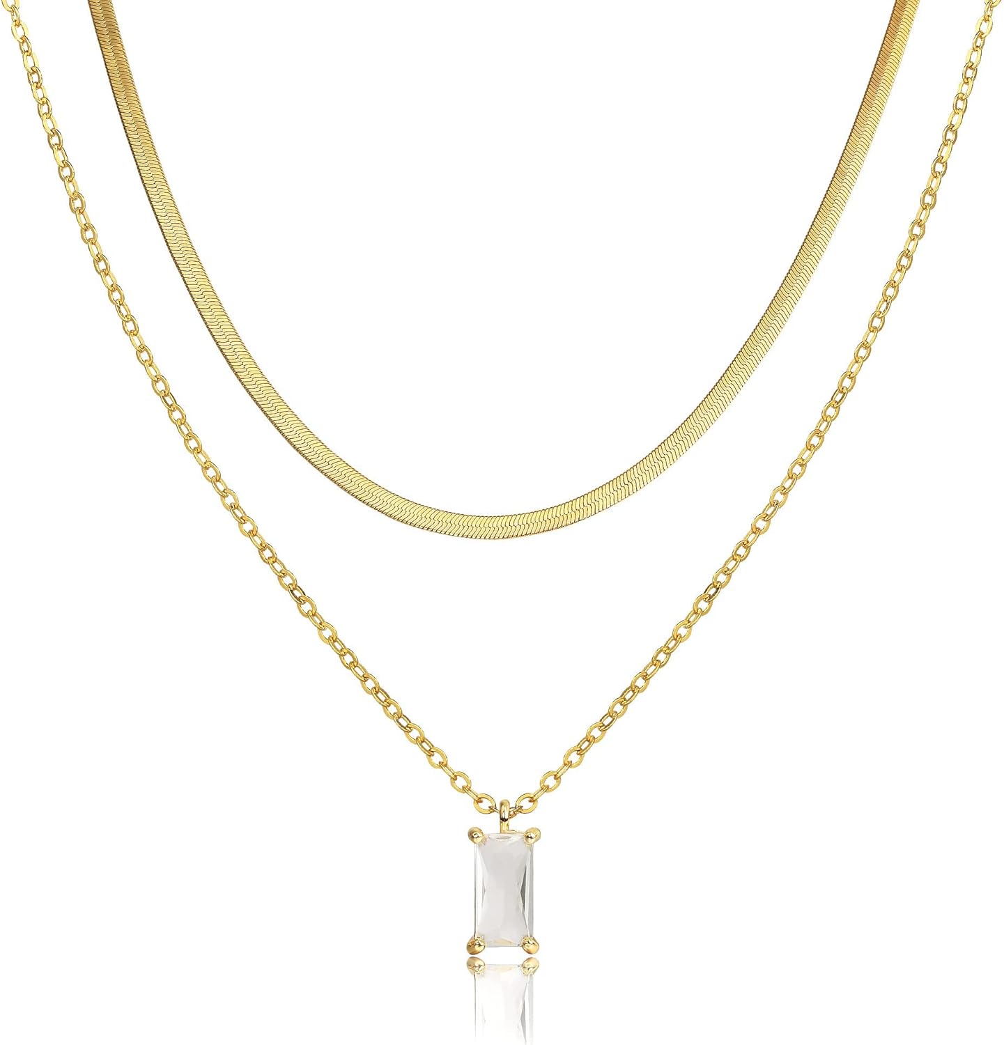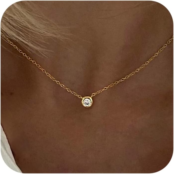 • Tewiky Dainty 14k Gold Plated/Silver Cubic Zirconia Necklaces for Women, Simple CZ Jewelry Necklaces Trendy Gifts